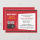 Tenham uma festa de aniversário de cinema e convidem convidados com este convite temático. Ele tem um projetor de filmes da velha escola projetando no ecrã branco que você pode personalizar com os detalhes da sua festa! Borda de pontos brancos e amarelos.