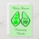 Este incrível convite para chás de fraldas apresenta uma imagem gráfica de uma vagem verde de ervilha contendo 3 ervilhas verdes. A maior ervilha tem um rosto bonito com olhos e boca. Do outro lado da ervilha, em texto verde mais escuro, diz "Pronto para Pop". O texto é totalmente personalizável para que você possa personalizar este adorável convite para chás de fraldas.