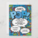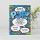 Um convite divertido, legal e moderno inspirado na arte pop de histórias em quadrinhos para chá de bebê ou celebração que dá o toque de wham, zap, pow em qualquer evento de celebração para a futura super mãe ou casal. Criado por Thisisnotme©