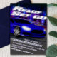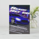 Coloque os motores para funcionar e corra até a linha de chegada para celebrar o aniversário do seu filho. Este convite exclusivo foi desenhado digitalmente para ilustrar um carro esportivo muito rápido em um concurso de corrida noturna sem que ninguém consiga alcançar