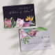 Este convite à apresentação de proposta de honra roxa tropical colorido é perfeito para o seu destino de boho moderno, casamento verde, roxo, pêssego. Design apresenta um buquê elegante de verde-aquarela de praia clássico e flores que podem incluir eucalipto verde-sábio, proteína vermelha e mauve, hibisco rosa-pincel, pássaro laranja e azul do paraíso e folha verde-escura de palma. O design é ideal para um simples, criativo, único casamento de viagem para primavera, verão, outono ou inverno! Por favor, encontre outra papelaria de casamento no resto da coleção.