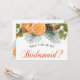 Carteira de entrega de Bridesmaid. Design com elegante arranjo floral de outono com bolotas e abóbora, etc. Adicione sua mensagem à parte traseira deste cartão postal. Para editar modelo, clique em personalizar mais.