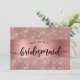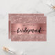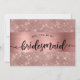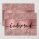 Peça aos seus amigos e família para fazerem parte do seu casamento com esta carta dourada rosa "Will You Be My Bridesmaid", com folha de ouro rosa e fundo cintilante. Por favor, note que não será usada nenhuma folha de alumínio real.