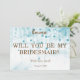 Este belo cartão de convite da dama de honra de 5" x 7". Isto é melhor para a noiva, que adora cores azuis e bolinhas. É uma maneira muito divertida de pedir a sua amante ou amiga para fazer parte da sua noiva. A design apresenta uma caligrafia elegante, delicada e romântica escrita à mão com tipografia formal do chique.