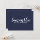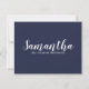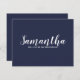 Proposta de Bridesmaid | Marinho de Script Moderno Cartão Azul com redação personalizada bridesmaid name no estilo de letra branco do script moderno com detalhes na fonte branca do sans serif moderno sobre fundo azul marinho. Também perfeito para madrinha de casamento, florista, padrinho de casamento, melhor homem e portador de anel.