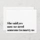 Peça ao seu celebrante para se casar com você com este cartão de proposta de celebrante com tipografia moderna que diz: Ela disse sim agora precisamos de alguém para nos casar, você será o nosso celebrante?