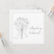 Um cartão de saudação simples e elegante com a mensagem "você será minha dama de honra?" acompanhado por um desenho de linha de um buquê de flores amarradas com uma fita em um arco. O design minimalista do cartão e a ilustração floral graciosa transmitem uma sensação de encanto refinado e de calor sincero, perfeito para estender um convite especial.