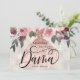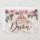 Convite de Proposta de Dama de Quince Anos com design moderno floral. Desenho com vestido dourado rosa, elementos florais em um fundo pérola brilhante e brilho dourado rosa falso no verso. Personalize com um nome.