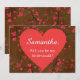 Uma encantadora proposta de damas de honra, este item apresenta um design de coração em um fundo marrom, há um coração vermelho brilhante com seu modelo dentro. Personalize o seu hoje!