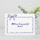 Pergunte ao seu melhor confidente em estilo este Convite de Proposta de Madrinha de casamento de Fita Azul Whimsical! Apresentando um arco de fita desenhado à mão, peculiar e imperfeições lúdicas, este design transforma sua pergunta corajosa em uma merecedora.
