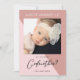 O convite à proposta moderna, moderna e divertida da madrinha mostra sua foto e uma mensagem em um fundo rosa dourado e rosa.