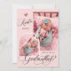Um convite para a proposta de 3 fotógrafas modernas e elegantes. Design apresenta 3 fotos do bebê, script de tipografia ''você será minha madrinha''. Personalizado com o nome da tia.
