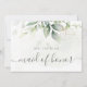 Cartões de madrinha de casamento bonitos com aquarela eucalipto e folhas de ouro.