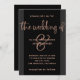 Este maravilhoso convite de casamento apresenta um fundo negro com bordas escuras de cinza de carvão e uma tipografia manuscrita de rosa de ouro moderna. Uma aparência simples e contemporânea com uma amostra floresce e corajoso texto correspondente.