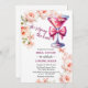 Um design elegante com um vidro prosecco com arco, rosas e borboletas e roteiro moderno. Você pode personalizar este convite com seus próprios detalhes.