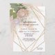 "Elegante Protea Floral Pampas Grass Dourado Convite Geométrico para Casamento." Lindas flores da proteína-rei foram pintadas em pastéis de petróleo por artistas e designers internacionalmente licenciados e emparelhadas com flores brancas de hydrangea, colônia e folhagem de grama de pampas. A imagem geométrica do rosa dourado adiciona um toque moderno. Direitos autorais.