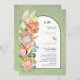 Flores tropicais de proteína pampas de capim e eucalichipre deixam o convite para o casamento da arca verde sage. Esta adorável design de casamento apresenta um quadro de arco sobre fundo verde sábio com seus índios e texto. À esquerda há flores de proteína, gramíneas-pampas e folhas de eucalipto.