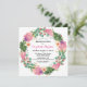 Este chá de panela de praia tropical apresenta uma elegante camada de aquarela tropical com uma flor tropical King Protea, uma plumeria rosa e verde, em tons de elementos rosa, verdes e roxos, sobre fundo branco e caligrafia tenda com letra de guião. A parte traseira do cartão contém o site de casamento ou informações de mídias sociais. Perfeito para o local de casamento da praia tropical na Flórida, Havaí, o Caribe, México, ou qualquer casamento que aconteça nos trópicos. Coordenando itens disponíveis na minha coleção de Casamento de Proteas Rosa Tropical de Praia em minha loja Zazzle:
