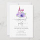 Convites de provando de vinho floral de aquarelas com cor ultra violeta do ano 2018, com tons de verde roxo e sábio. As flores incluem hidrangea, lavanda, peonias e rosas.