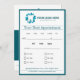 Este cartão pode ser utilizado pelo seu gabinete de Endodontia, como um lembrete físico da próxima data de consulta do doente, do procedimento para o qual estão agendados e do médico que irão ver. Substitua o logotipo e as cores do texto para corresponder à sua marca! Isto funciona também para os consultórios dentários! Apenas mude o texto para os procedimentos oferecidos! A parte de trás deste cartão está configurada para pedir revisões online, para melhorar a reputação da sua prática. Este lado também é totalmente editável para atender às necessidades do seu negócio dentário!