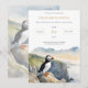 This invitation features an original digital watercolor illustration of a cute puffin on the cliffs.
