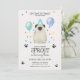 Convite perfeito para amantes de cães! Convite de Aniversário do Cachorro com um chapéu de festa azul e balões verdes e azuis. Confira Lets Pawty Collection para outras raças de cães e itens correspondentes.