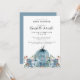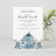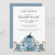 Um chá de fraldas moderno de aquarela em azul empoeirado com uma abóbora azul empoeirada e montanhas florais e azuis rústicas. "Um pouco de abóbora está a caminho".