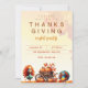 Looking for a fun and festive way to invite friends and family over for Thanksgiving this year? This fun and colorful invitation features a wagon full of pumpkins and cartoon turkeys surrounded by autumn leaves, making it the perfect way to get everyone in the Thanksgiving spirit!
