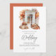 Porta Branca de Casamento de outono decorada com abóboras em laranja e vermelho. Design de aquarela elegante e simples. Os produtos correspondentes podem ser encontrados na coleção de Portas de Solas de Aquarela do Autumn Wedding.
