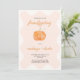Celebrar o janto de Ação de Graças com amigos com este único design de outono, o tema de Ação de Amizade, que inclui o moderno texto em minúsculas e uma abóbora de aquarela em um quadro cor-de-rosa ondulado e pincelado. O reverso apresenta um padrão de abóbora correspondente. Você pode personalizar facilmente o convite a seu gosto alterando o texto. Arte original de Nic Squirrell.