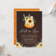 Se apaixonem! Este chá de panela do tema floral apresenta abóbora aquarela com girassol amarelo, algodão e folhas de eucalipto sobre fundo de madeira falsa. Personalize adicionando nomes, data, hora, local e outros detalhes do evento. Este convite para girassol rústico é perfeito para chás de panela de outono ou outono.