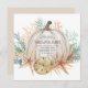 Convide seus hóspedes para um banquete de férias com o tema de outono costeiro O convite para o janto Ação de Graças que inclui uma abóbora de aquarela cercada por estrelas-do-mar e conchas de areia, coral, palma e eucalipto verde em uma paleta de cor de outono, em tons de terra.