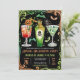 Este convite de festas de coquetel anual do Dia das Bruxas apresenta uma paleta colorida de verde e laranja com dois coquetéis assustadores, como um martini de globo ocular com uma tarântula e um coquetel de jack o'lantern com uma gigantesca garrafa de veneno mortal. A borda desta design é uma espiral mágica com morcegos e estrelas em laranja e verde. Na parte de trás do convite está um design de espiral assustador com crânios, morcegos e aranhas. Você pode personalizar todo o texto neste design. Veja toda a coleção correspondente. Todo trabalho de arte é direito autoral de Kaitlyn Thomas.