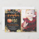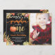 Projetado para nossa coleção Little Pumpkin, este Cartão de Convite personalizável apresenta fundo de quadro negro, abóbora verde e laranja, texto brilhante dourado e folhas douradas com fontes manuscritas. Itens correspondentes disponíveis.