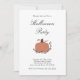 Convite do Festa de Halloween, com uma abóbora laranja e design de tipografia de script. Com texto preto personalizável, você pode adicionar suas próprias informações. Um tema elegante no outono para planejar sua próxima fantasia ou comemoração do Halloween.