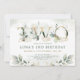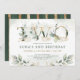 Este elegante convite para segundos aniversários com o tema da abóbora apresenta lindas folhas de cor aquosa verde em verde macio e ouro e tipografia moderna