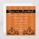 Convites de Halloween que apresentam um gráfico assustador de abóbora em um fundo listrado de laranja. Todos os nossos convites podem ser personalizados por você.