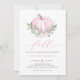 Se apaixonem! Celebre a noiva a ser com este chá de panela caprichoso e elegante. Apresenta ilustrações de aquarela de uma abóbora rosa, verde e flores brancas, e padrão de correspondência. Personalize adicionando nomes, data, hora, local e outros detalhes do evento. Este convite para abóbora é perfeito para chás de panela de outono.