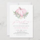 Um pouco de abóbora está a caminho! Celebrar a mãe a ser com este convite de chá de fraldas caprichoso e elegante. Apresenta ilustrações de aquarelas de uma abóbora rosa, verde e coroa de flores brancas. Personalize adicionando nomes, data, hora, local e outros detalhes do evento. Este convite de abóbora rosa é perfeito para uma chá de fraldas de queda de Menina.