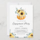 O tema da abóbora botânica é convite para festa de noivado. Apresenta abóbora aquosa com girassol amarelo, algodão e folhas de eucalipto. Personalize adicionando nomes, data, hora, local e outros detalhes do evento. Este convite para girassol rústico é perfeito para festas de noivado do outono ou do outono.