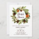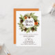 Pumpkins e Pinecones Wreath Fall Chá de panela | Convide familiares e amigos para o seu evento com este chá de panela personalizável. Apresenta uma camada aquosa de abóboras, pineges, flores e folhagem. Este convite floral é perfeito para chás de panela rústicos e de outono.