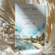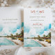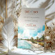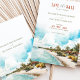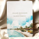 Anuncie seu próximo casamento com este cartão impressionante "Salve a Data" com uma ilustração em aquarela de Punta Cana, República Dominicana. A design captura a beleza tropical da costa Caribe, mostrando águas turquesas, praias arenosas e palmeiras balançando sob um céu claro e brilhante. O bege quente e os tons verdes evocam um senso de relaxamento e beleza natural, enquanto a elegante tipografia adiciona um toque de sofisticação. Ideal para um casamento de destino, este cartão dá o tom perfeito para uma celebração romântica e à beira da praia.