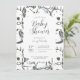 Cute and playful puppy dog sketch baby shower invitation in a simple grey, white, and blue palette. Great for gender neutral baby showers, pet themed showers, and baby boy celebrations.