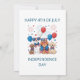 Que o pelo voe este Dia da Independência com o convite de festas patriótico final! Esta design divertida apresenta quatro cachorros adoráveis, todos vestidos de vermelho, branco e azul - completos com chapéus de bandeira, tons e gravatas arcos americanos. Acima deles, fogos festivos e balões iluminam o céu na verdadeira moda do 4 de julho. Perfeito para amantes de cães, churrascos familiares, celebrações de quintal ou qualquer cesta de verão com estrela. Estes filhotes estão prontos para pata-pau!
