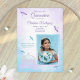 This light purple and turquoise Quinceañera invitation has a glittery horse carriage and fluttering dragonflies. Browse matching rsvp cards, envelopes, labels, and stickers in this collection. Easily add your photo and transfer this whimsical purple dragonfly and horse carriage design to other stationery. This invitation template is versatile for dusty purple, lavender, lilac and light cyan color palettes. Beautiful for horse buggy and whimsical dragonfly party themes.