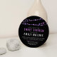 Escolha esses 16 convites divertidos e festivos em uma paleta de cores roxa e preta moderna. Design redondo único apresenta fios de terra de confetti em diferentes tons de violeta e lavanda, com tipos de blocos modernos em roxo e branco.