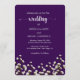 This sophisticated wedding invitation features a rich purple background with elegant white florals along the bottom for a refined and romantic atmosphere. The script and serif typography blend beautifully to highlight the couple’s names and important details. Perfect for evening weddings, chic bridal themes, and purple color palettes with a modern touch.