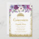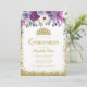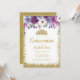 Um convite de Quinceañera para uma princesa de moda! Flores de aquarela roxas e lilás com borda falsa de ouro e tiara. Altere facilmente os estilos e as cores da fonte. Pode também substituir-se por uma redação espanhola.