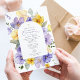Invite friends and family in style and set the tone for your special day with this elegant first holy communion invitation. Design features purple and yellow watercolor flowers and greenery on white background.