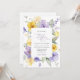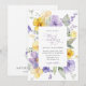 Invite friends and family in style and set the tone for your special day with this charming wedding invitation. Design features purple and yellow watercolor flowers and greenery on white background.